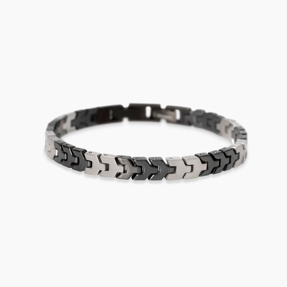 La Referenza 232637 è un Bracciale da Uomo in acciaio 316L lucido, satinato e con PVD gunmetal con maglie imperniate 8x6.8 mm in acciaio e in ceramica nera