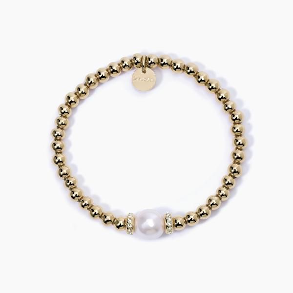 2 Jewels Bracciale Elastico Sfere Acciaio Gold e Perla