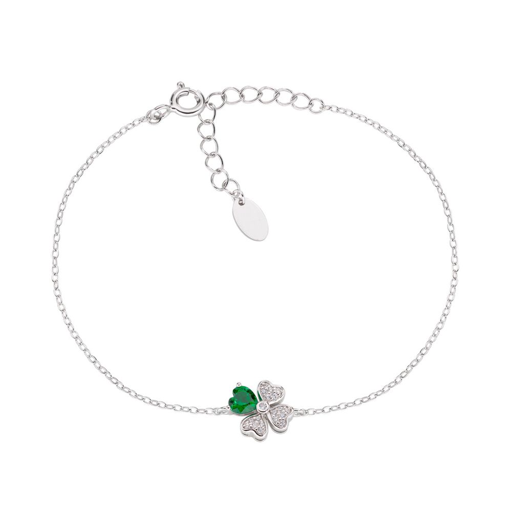 La referenza BRQUBV è un Bracciale da Donna In Argento Rodiato con Quadrifoglio Zirconato e Cristallo Cuore Smeraldo