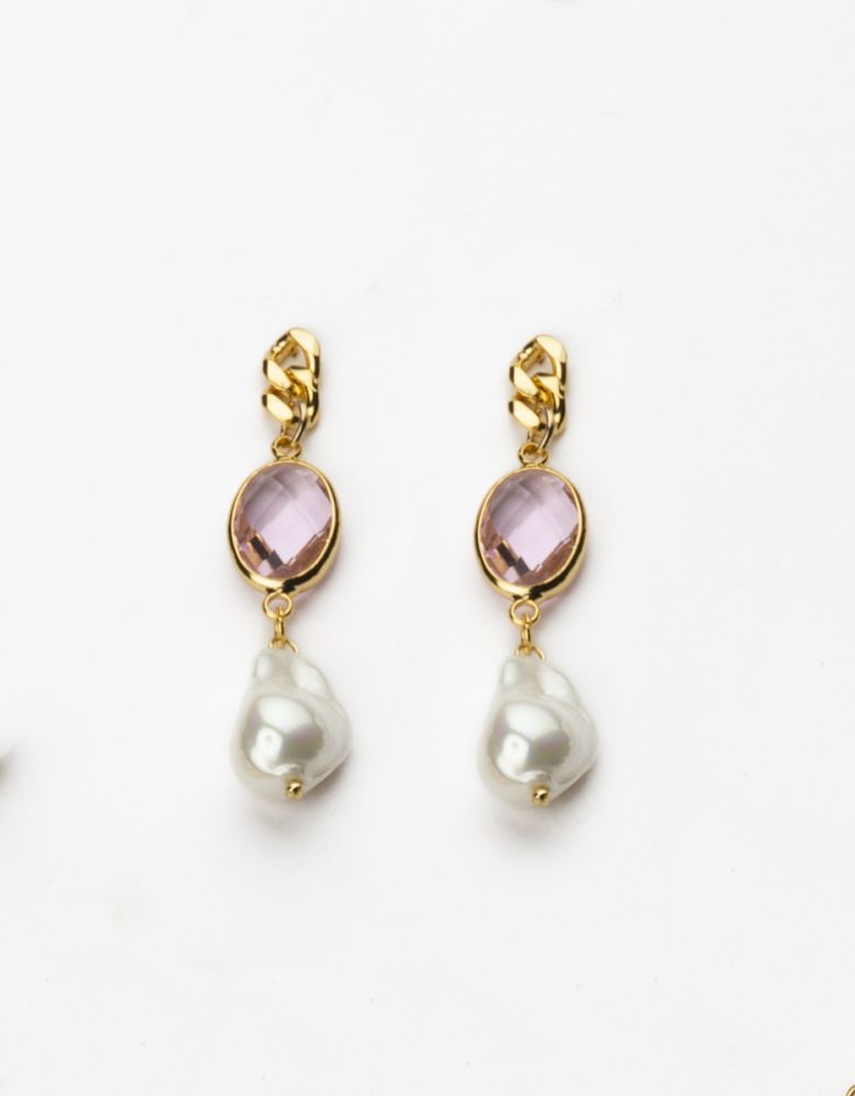 La Referenza OR37785-VE55 Sono Orecchini da Donna Top in brass Dorato con catena groumette e cristallo Rosa con perla barocca pendente crema