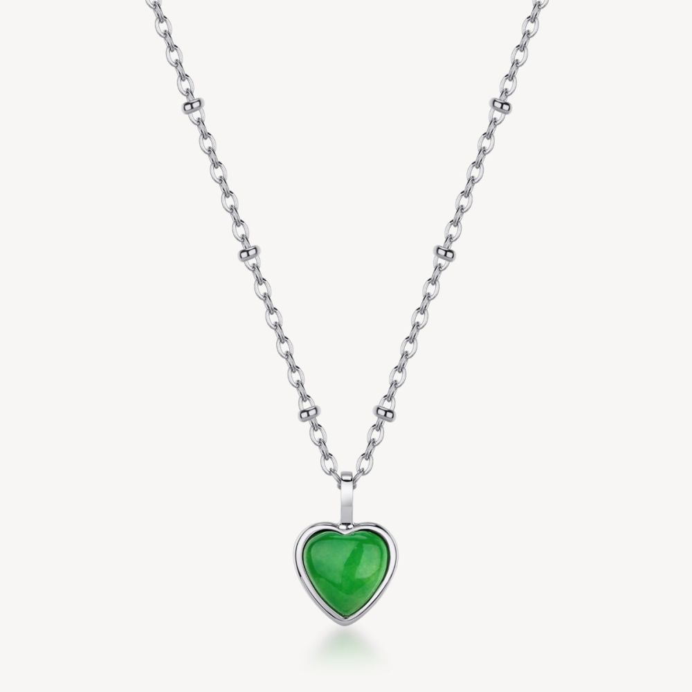 La referenza BNL129 è una Collana girocollo in acciaio 316L e pendente con Cuore Giada Verde.
