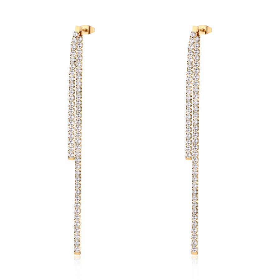 La Referanza BEIE004 Sono Orecchini Pendenti da Donna in Acciaio 316L Dorato 2 Fili di Cristalli Bianchi della linea Desideri