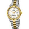 La Referenza 19003/1 è un Orologio Solo Tempo da Uomo con Cassa in Acciaio Bicolore da 41.5 mm e Vetro Minerale, il Quadrante è Silver con Numeri Romani Dorati e La resistenza all'acqua è di 10 atm