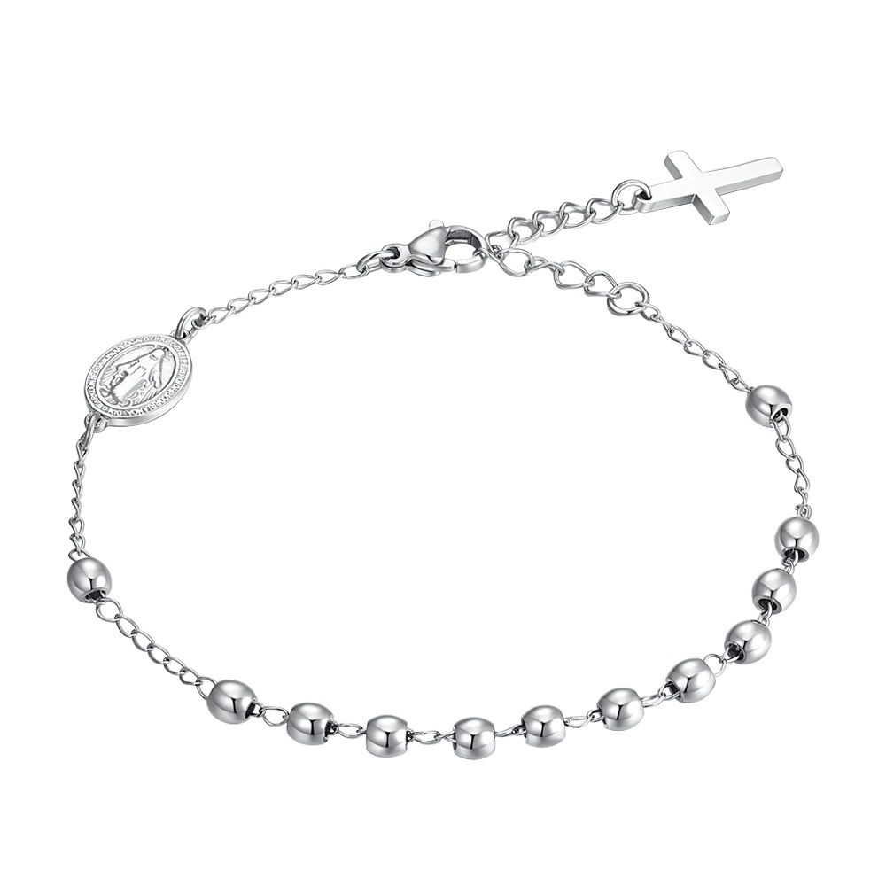 La Referenza BA1847 è un Bracciale Rosario da Uomo in Acciaio con Sfere Acciaio 4 mm Madonnina e Croce
